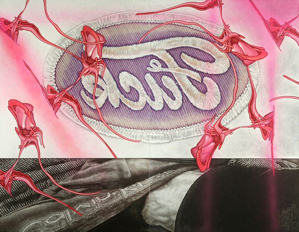 Ted Vasin: Graphite and Spray paint on canvas.