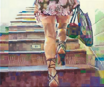 -away shots which otherwise gather digital dust buried away on hard-drives, camera chips, mobile phones or uploaded and then lost or forgotten someplace on the Web. With each image he paints he is meticulous about tracing the ownership and requesting permission, partly as a way of dealing with the anonymous nature of the Internet and also a reaction to the issues surrounding online privacy and copyright.