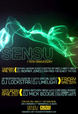 First off, DC was amazing and I am proud to have been the Selector for the 100th Annual Cherry Blossom Festival in Washington, D.C. Thank you so much Mari Yamaguchi for the opportunity to perform in front of Japanese Dignitaries and American Debutantes in the Nation's Capitol. I type this as I wait for my flight back to Indy and I can't get back soon enough... Little 5, Sensu's BIG Birthday Weekend (which I kick off with Christy Mack and a gang of Tatted Up Dimes), a couple HUGE Reggae Shows and a return from Z Trip at the Vogue have me not mad at Indianapolis at all! No place like home as they say on the road! Take a look below and all images link to event pages and more info so click on, click off, Danielsons...